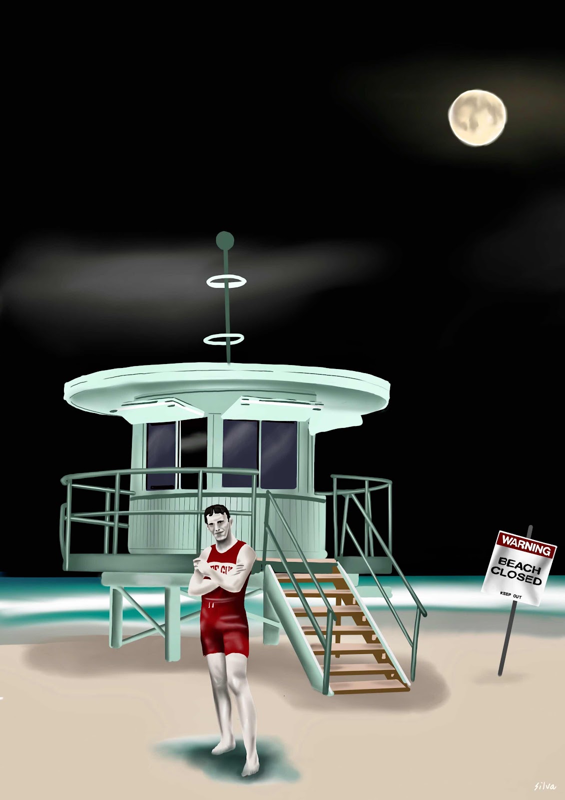 As the rumours persisted and the reports of strange rescues continued it was decided it would be prudent to leave the door to the lifeguard tower open so Benedict could see the dark waters more clearly.